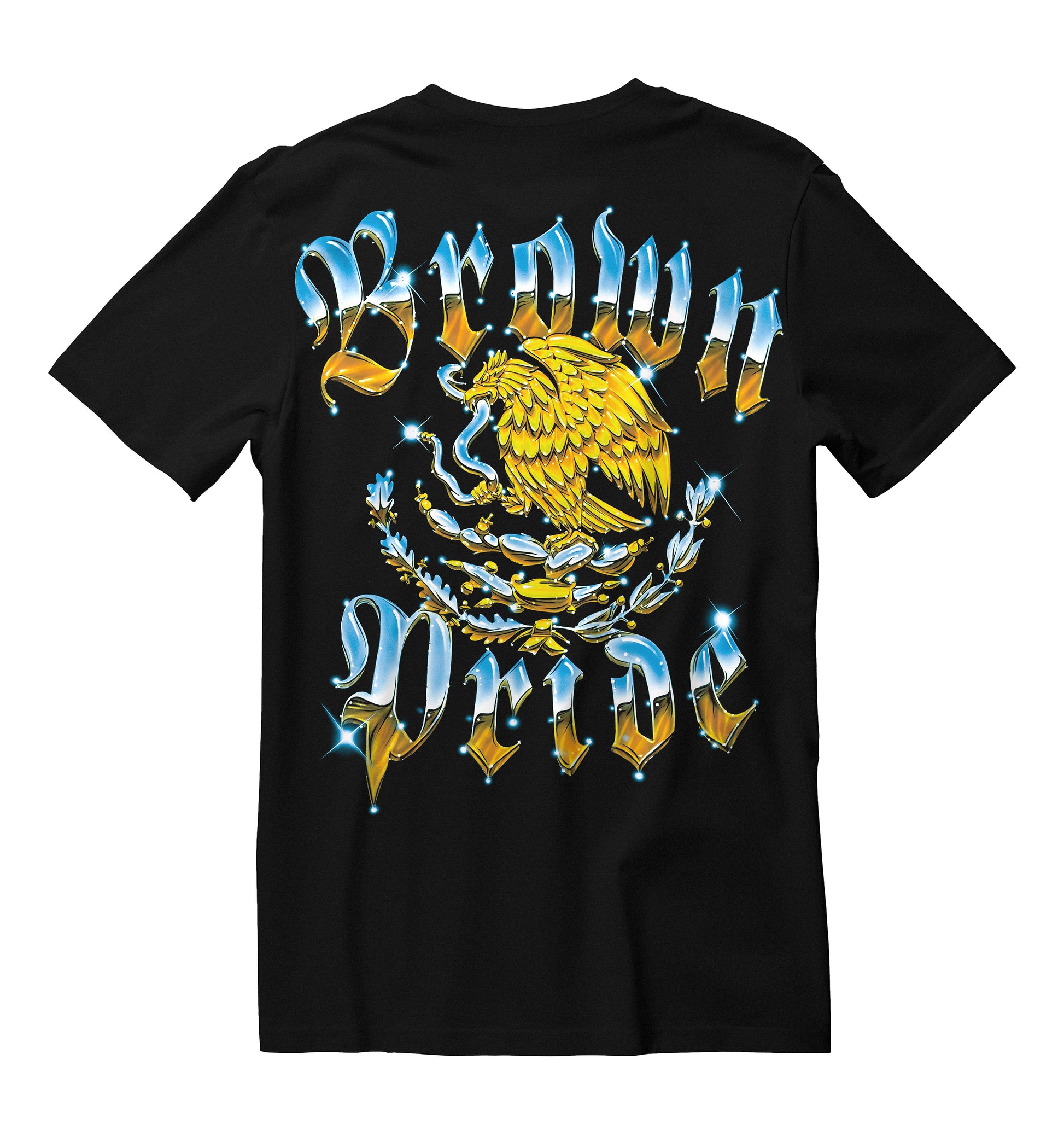 This tee features a bold chrome-style design with a golden eagle gripping a serpent, framed by sharp Old English lettering—an unapologetic tribute to culture, pride, and heritage.